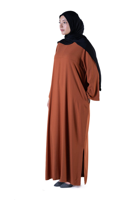 Embrace timeless elegance and effortless comfort with the Jolie Nisa Essential Abaya in a stunning Brick color.