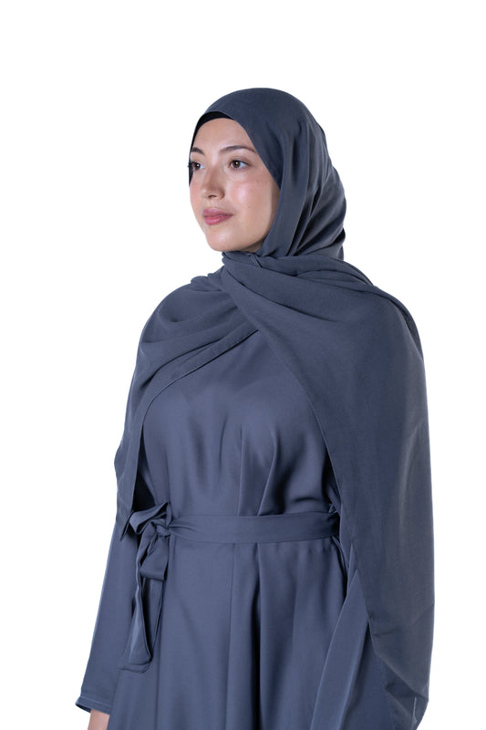Jolie Nisa Grey Satin Abaya – Full-Length Modest Dress with Belt & Hijab