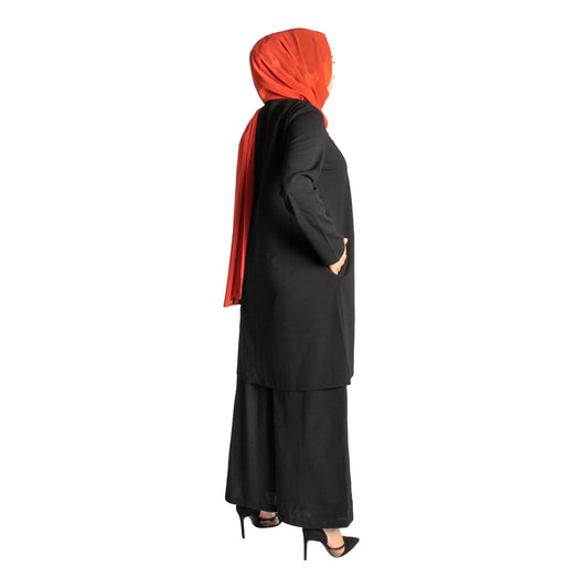 Ensemble de costume boutonné noir modeste et élégant pour femmes