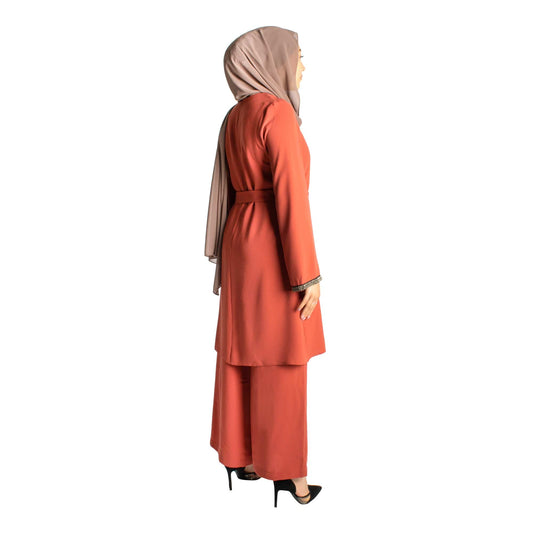 Ensemble de costume boutonné en brique modeste et élégant pour femmes