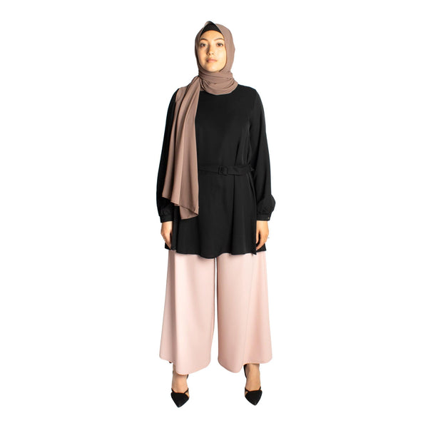 Casual, chic and comfortable, Black Flared Tunic with Buckle Belt is a timeless classic staple that you must have in your wardrobe. Made of 100% polyester fabric, the tunic dress features a beautiful boat neckline with full sleeves. The sleeves have a puffed hemline with button closure. The tunic dress is designed with flush cut self-arch details with a hidden zipper at back. Tuck the tunic with the matching buckle belt to get the flared look.